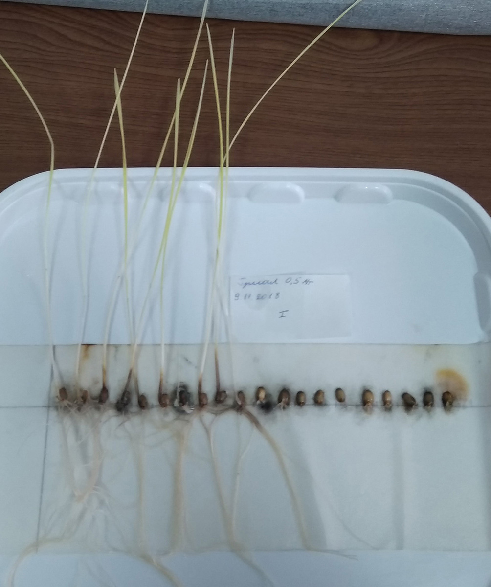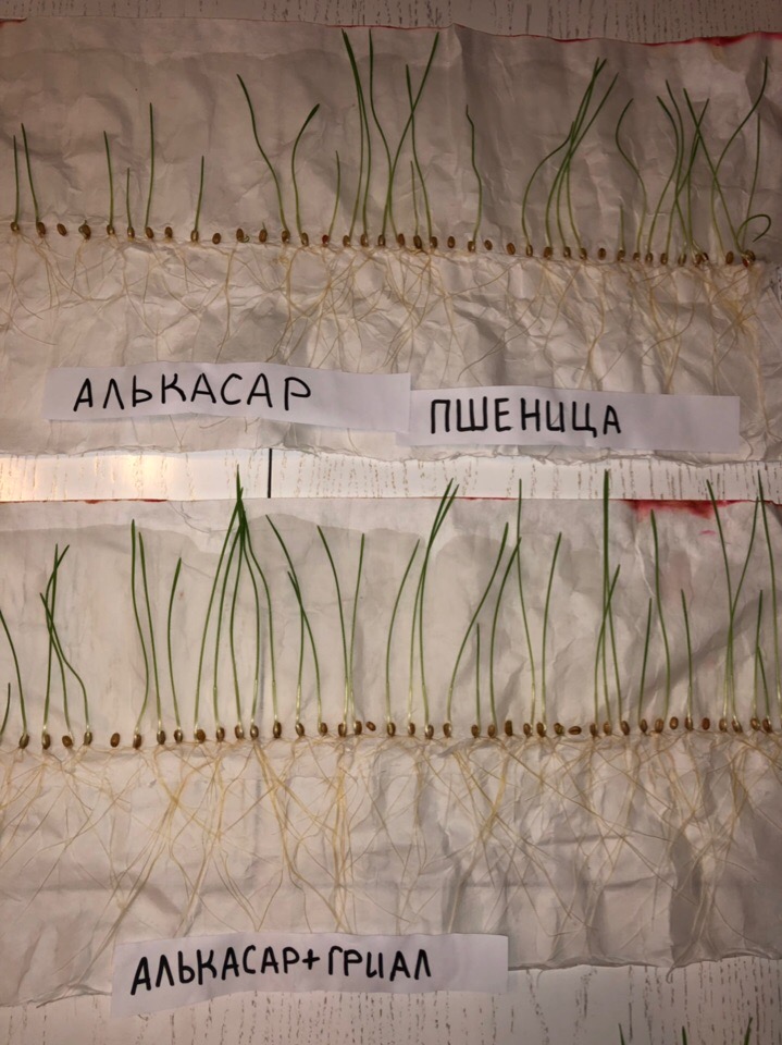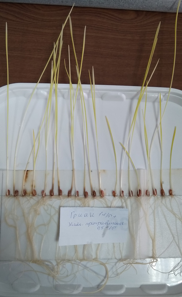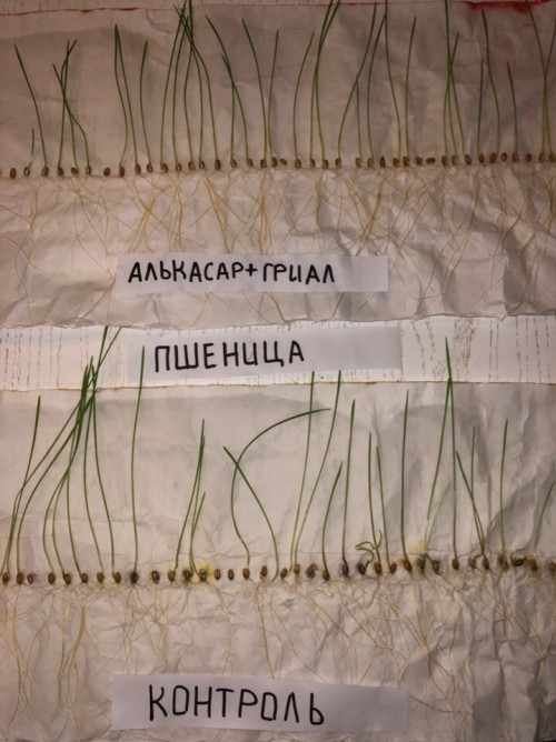 Испытание препарата Гриал на семенном материале яровой пшеницы положительно повлияло на энергию прорастания, превысив контроль на 12-17%. Влияние изучаемого препарата на всхожесть независимо от дозы составило 100%. Применение Гриала совместно с химическим протравителем обеспечило увеличение энергии прорастания и всхожесть на 10% и 5% соотвественно в дозе 1 л/т