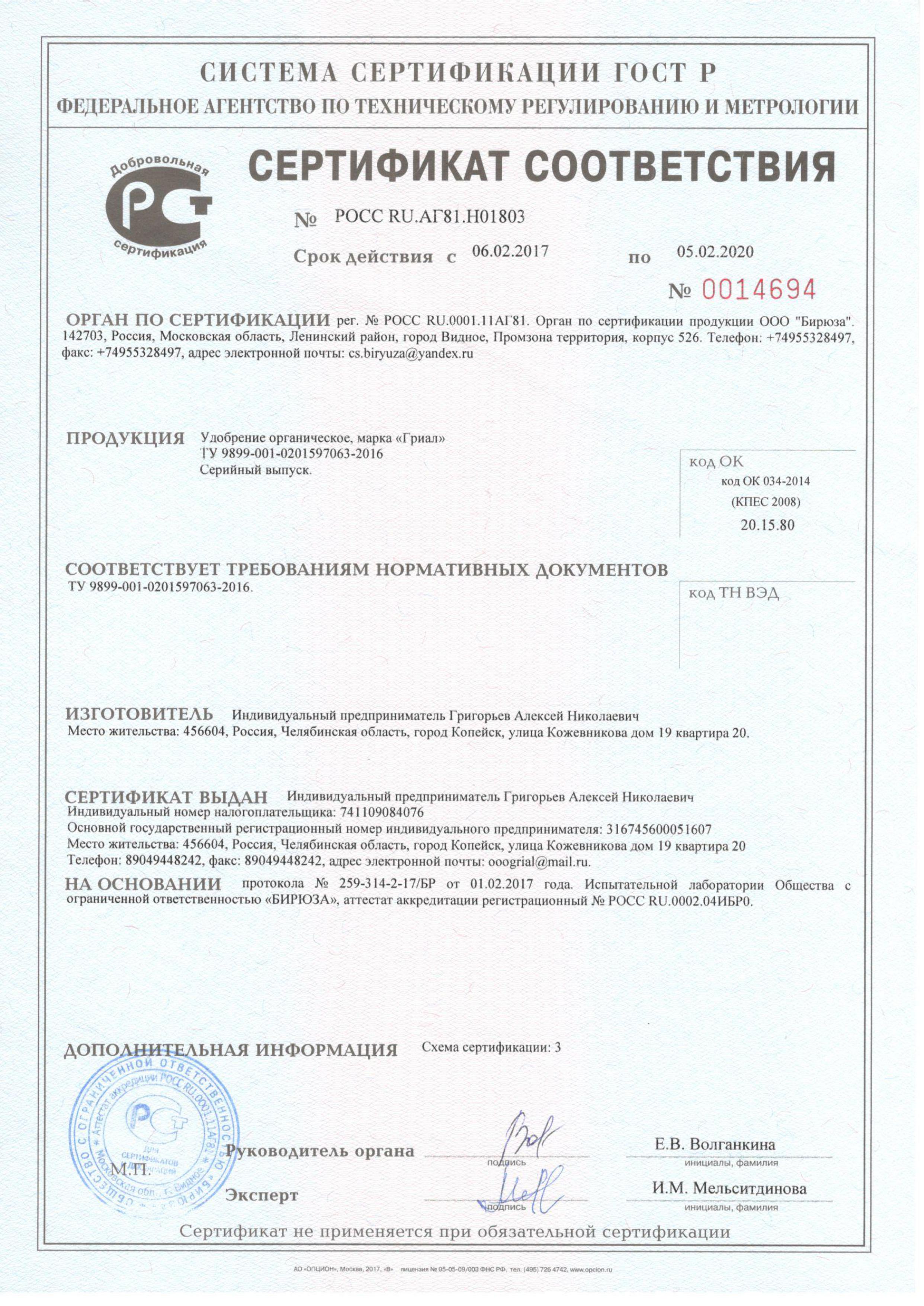 Компания «Гриал» (Россия, Челябинская область, г. Копейск) – является производителем натуральных удобрений органического происхождения, регуляторов роста.